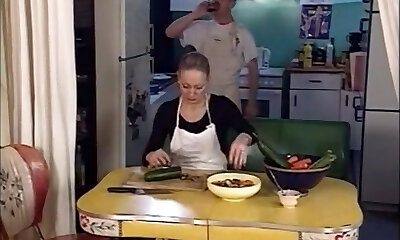 Mummy gave son-in-law coffee and a blowjob. Anal in the kitchen