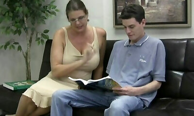 The step-mother helped to relieve tension and fapped off to him and for this she got a pecker in anal
