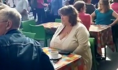 Waitress gets internal jizz flow in her cream-colored pussy under the table