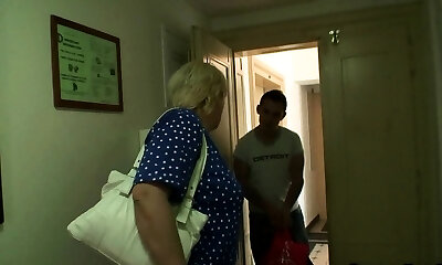 Boy seduces old busty blonde for cock-riding
