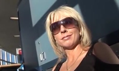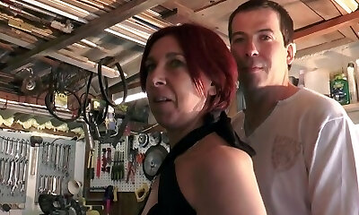 Blond mature gangbang in dirty garage
