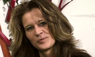 Lusty brunette mommy Miss Nina Swiss masturbates her huge pussy